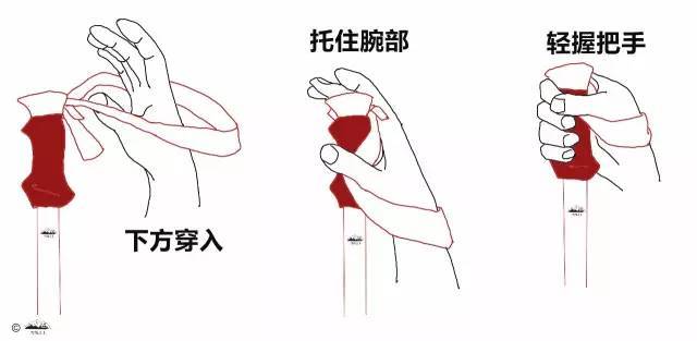 腕带:杖上用来套住手腕的带子,它的功能一是连接,二是传导力量。